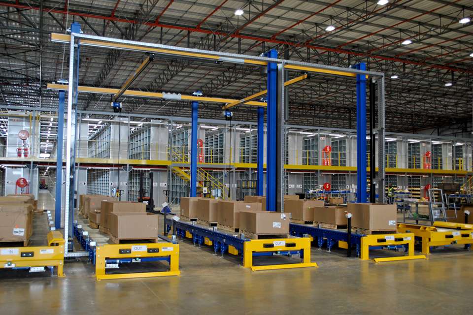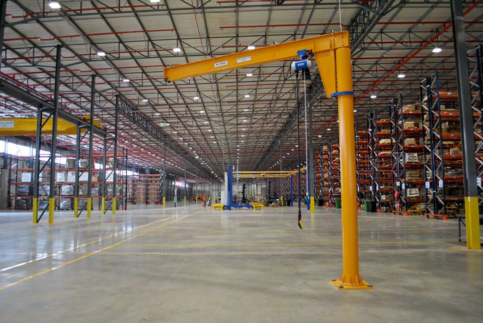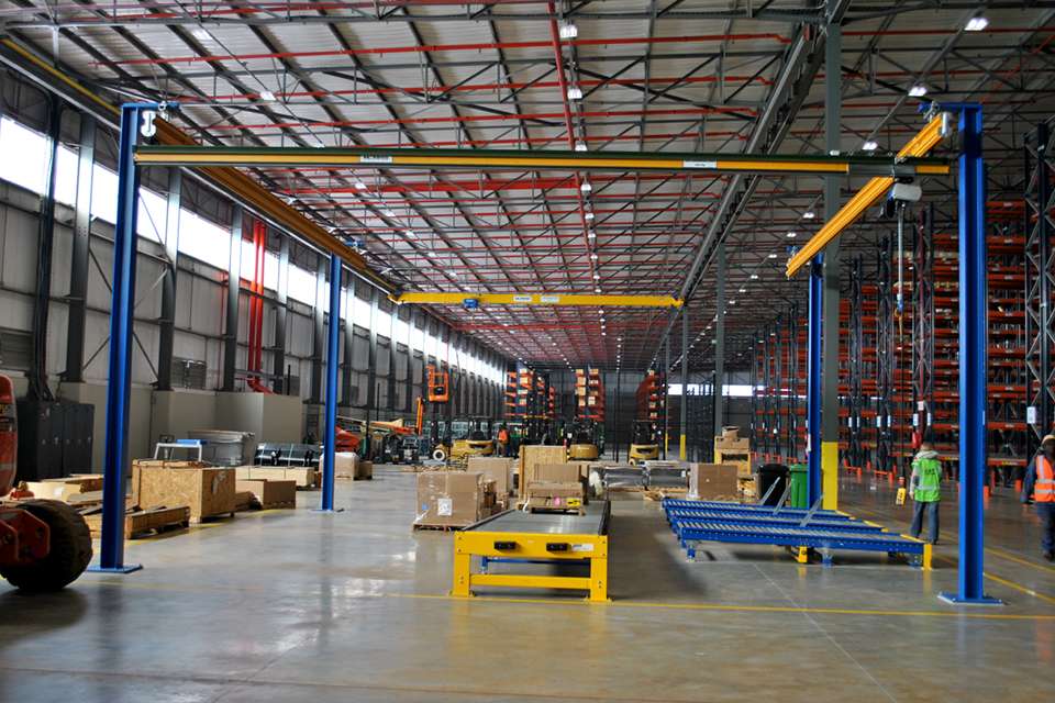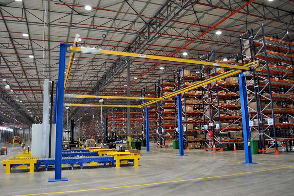 第二階段,Morris經(jīng)與Caterpillar公司接洽,決定提供并安裝三套起重量為0.3噸、起吊高度4米、跨度分別為8.055米、8.8米和8.058m米的安博HB輕型懸掛系統(tǒng),用于沿重力輸送機(jī)分揀和裝載卡特彼勒的備用機(jī)械零件,然后由叉車集裝并運(yùn)至倉(cāng)庫(kù)內(nèi)的存儲(chǔ)貨架。一臺(tái)起重量為0.3噸、臂長(zhǎng)4米、起吊高度為4米的立柱式旋臂起重機(jī),用于在堆場(chǎng)區(qū)域起吊和裝載備件。